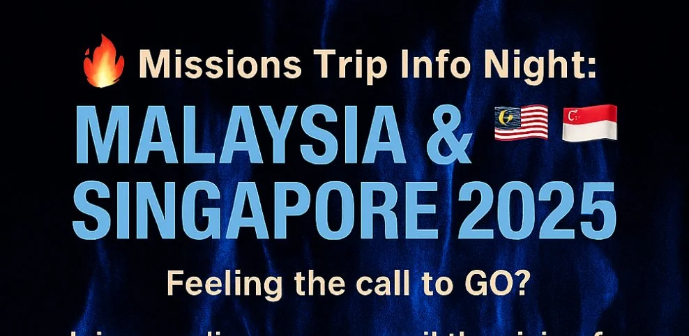 We’re hosting a special online meeting for all those interested in joining the upcoming missions trip to Malaysia and Singapore. Whether you’re praying about going, already committed, or simply curious—this is your moment to connect, ask questions, and catch the vision.